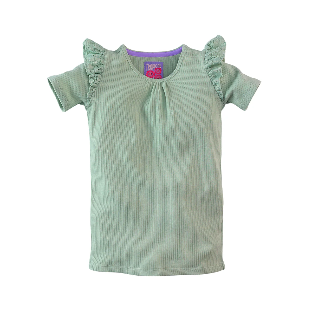 Basic beauty! Cherli is een hele fijne shortsleeve, gemaakt van een soepele tricot rib stof en afgewerkt met fantastische kanten ruffles op de schouders! Basic in kleur, maar de beauty dankzij de stoffenmix, de perfecte combi! Cherli is een heerlijk setje met skirt Inaya of skort Yasmina!