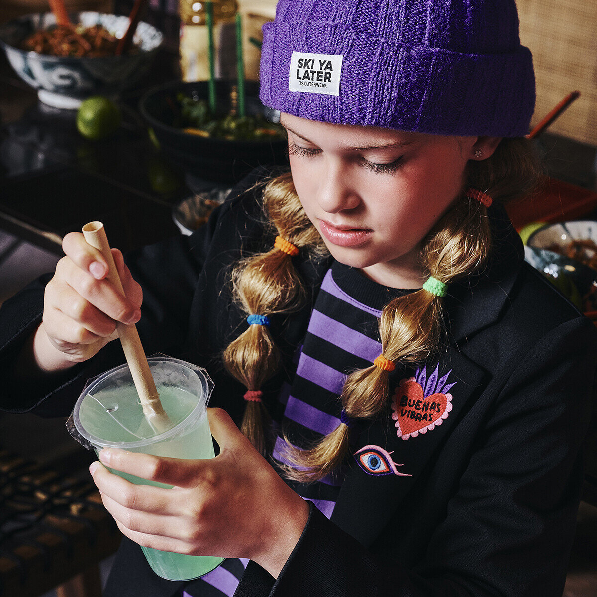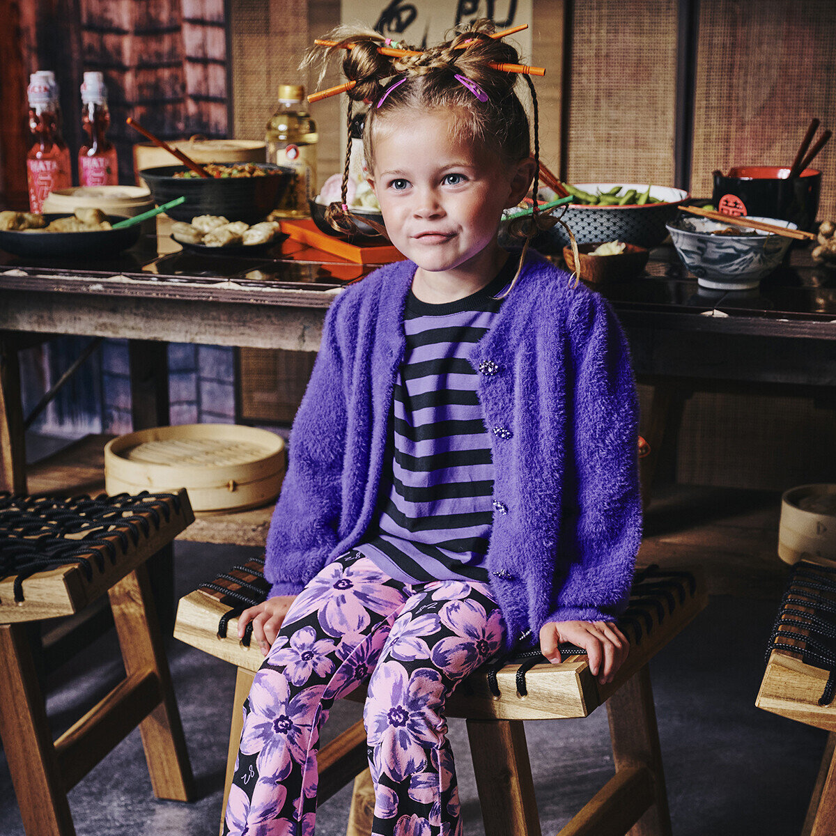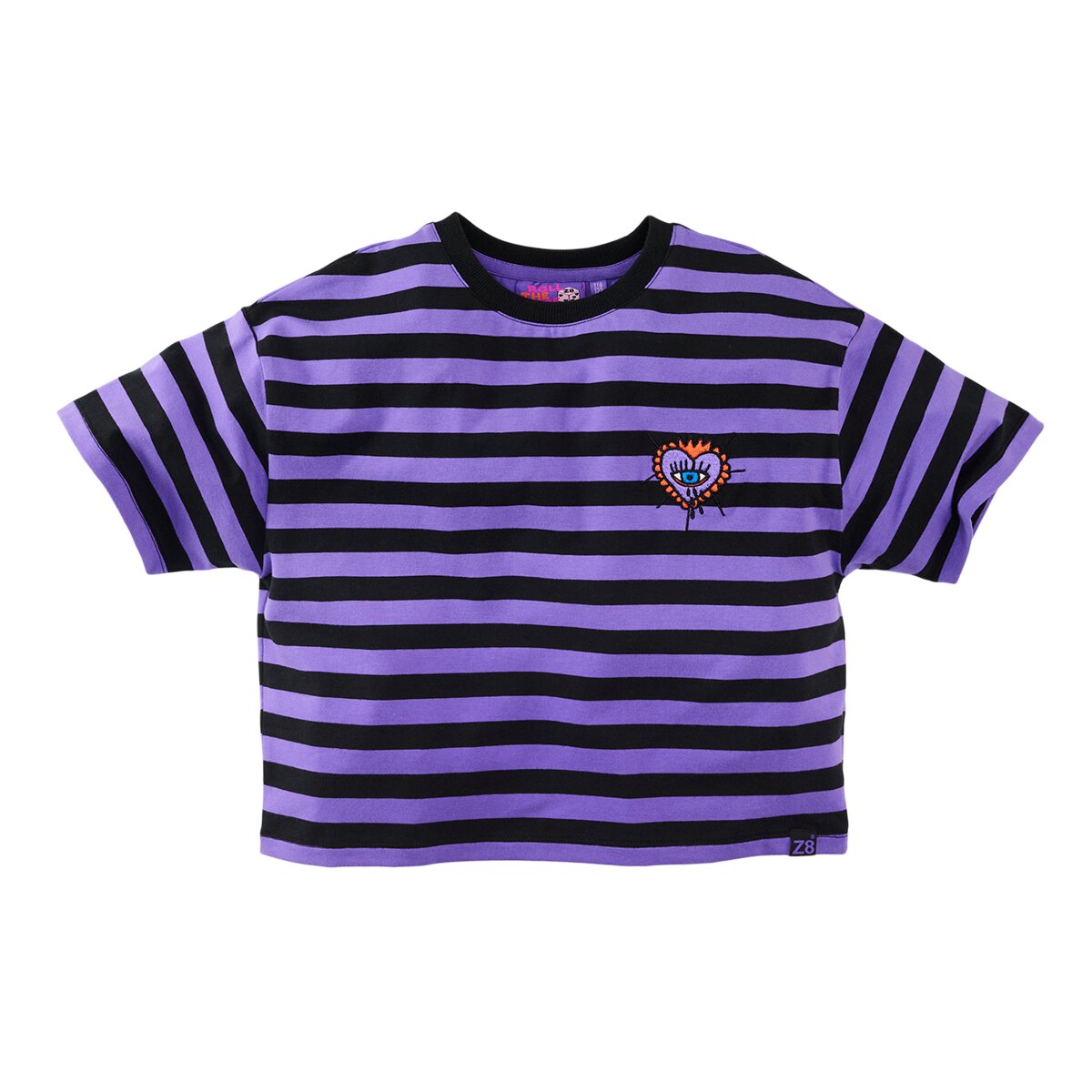 Streepjes met een twist — de Dagmara Boxy Tee combineert paars & zwart met een geborduurd detail dat je look net dat beetje extra geeft!