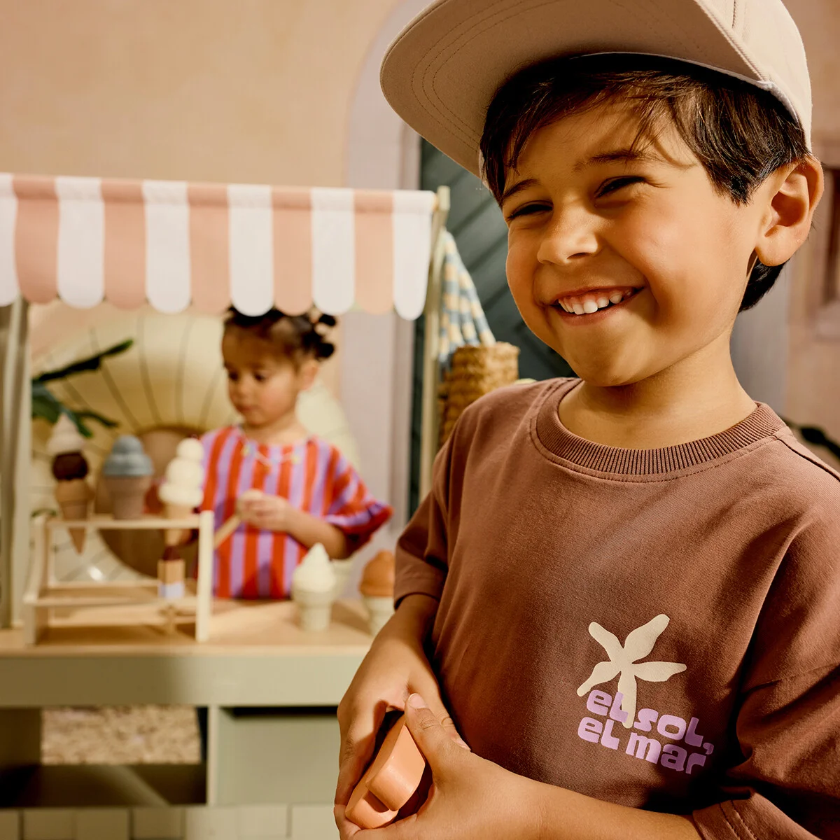 Beach mood in blush brown: oversized fit met backprint die zomer roept!