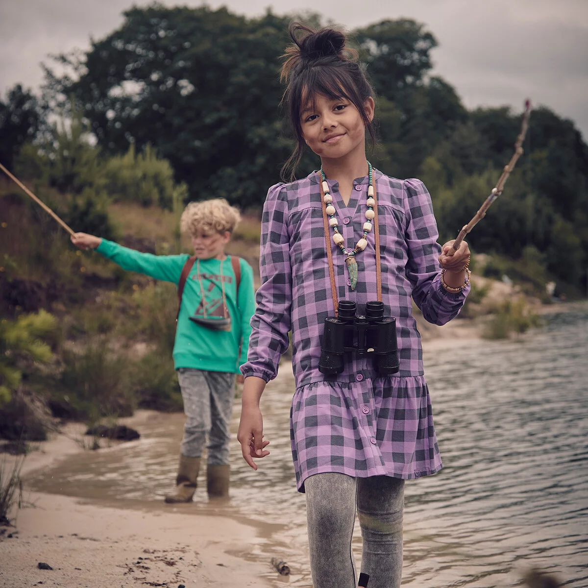 Een jurkje om de show mee te stelen dit seizoen? Met Floor zit je check! Dit Purple Power jurkje heeft een checked print en een wijd uitlopend rokje, cute. Van boven naar beneden loopt een knoopsluiting. Ga voor de ultimate look met gilet Angie en leggings Olga!