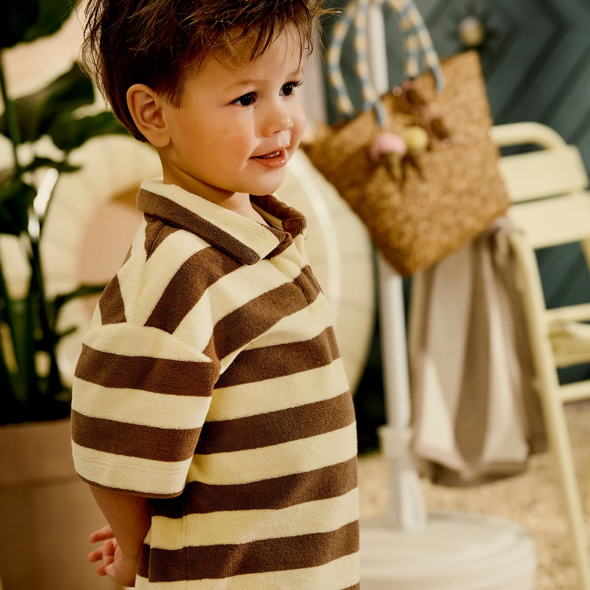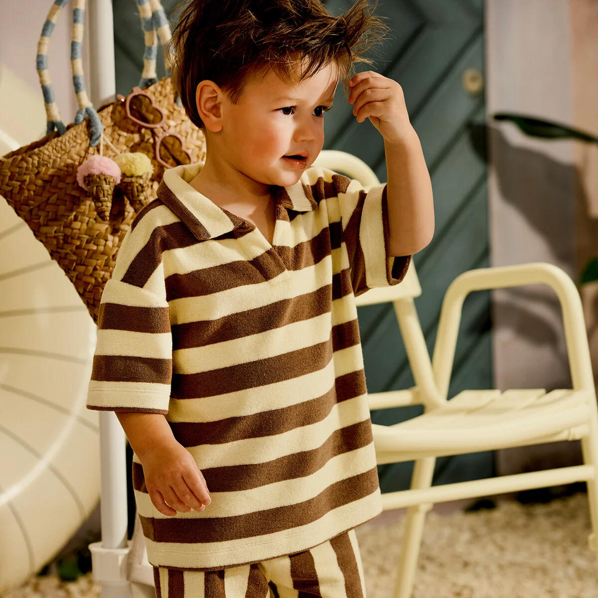 Je m’appelle Louie! Badstof polo met strepen en oversized fit—très cool met de Sami shorts.