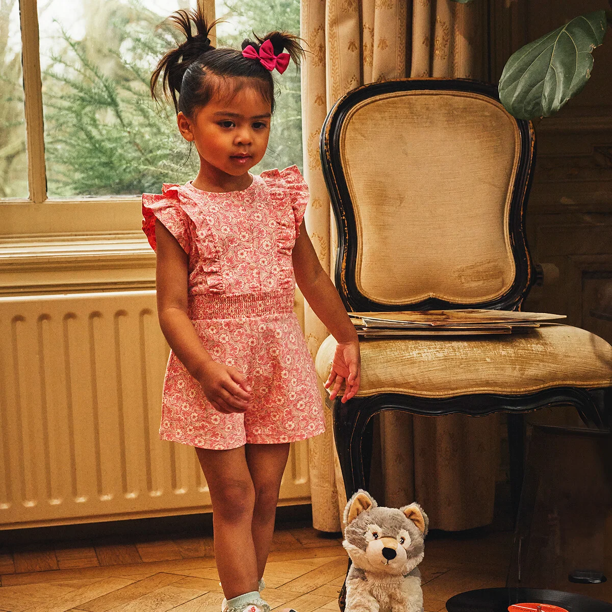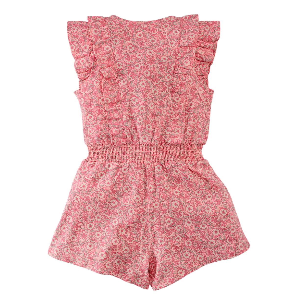 Aan-en-gaan! Dat is het succes van Marly! Je hoeft niet na te denken over een combinatie, want deze geweldige playsuit is een top en broekje in één. En ze is niet zomaar een playsuit, ze heeft een heerlijke bloemen all-over print in een prachtige kleurencombinatie, ze is afgewerkt met ruffles bij de schouders en op de voorkant én je krijgt haar makkelijk aan en uit dankzij de placket met drukknoopjes! Hebben dus!