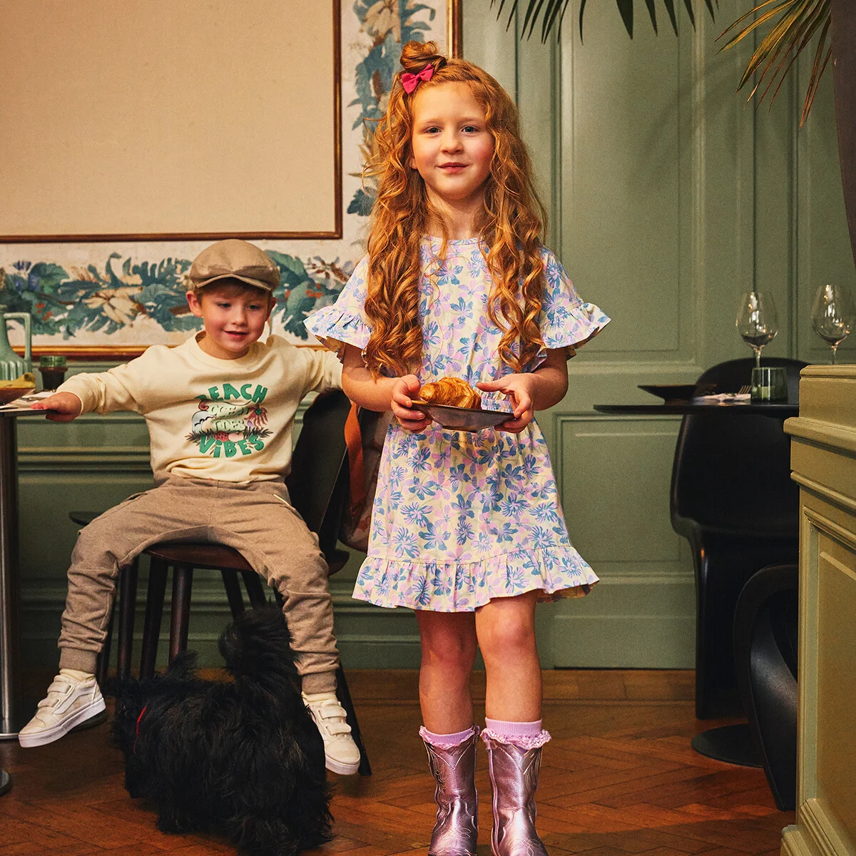 Allemansvriend! Dat is jurkje Pearl! Dankzij haar mooie kleurencombinatie, de perfecte fit met de smalle elastische tailleband en de aangeknipte mouwen die afgewerkt zijn met mooie ruffles. Aan en gaan!