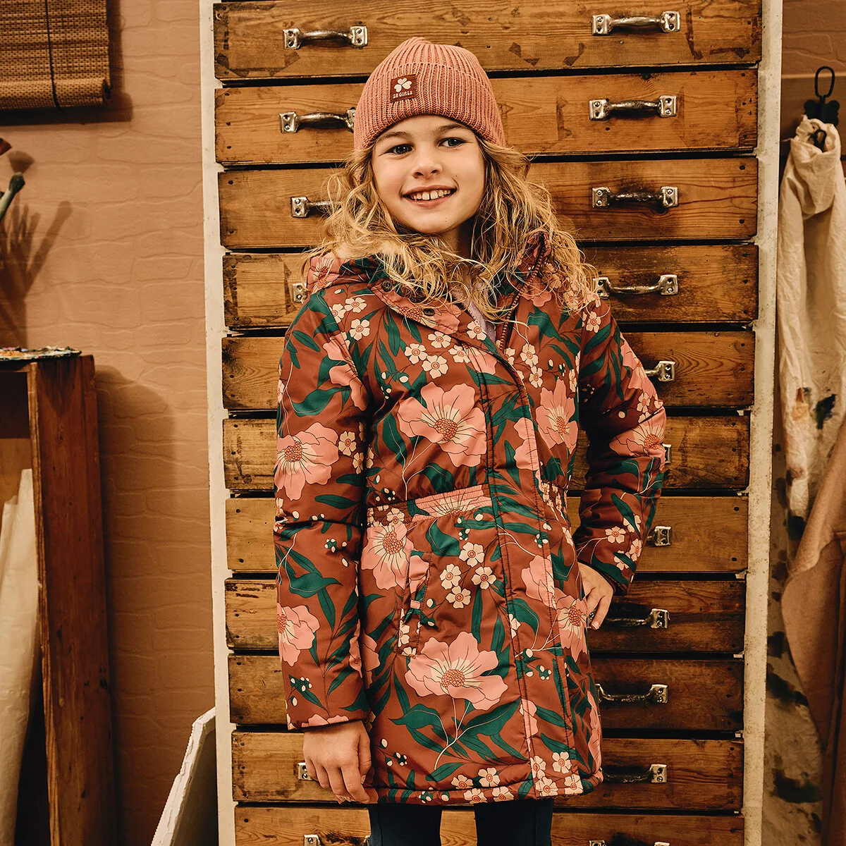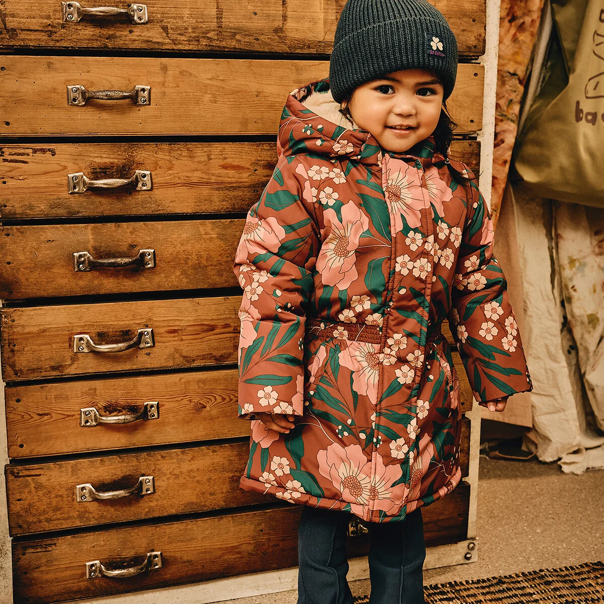 Hi you! Yes you, use some colour! Winter jacket Rori wacht op jou in de winter! Ze wil graag een kleurrijk bloemenfeestje met je bouwen! Met haar zachte fake fur binnenkant, winddichte & waterafstotende stof is Rori de juiste beschermer voor jouw moderne muse tijdens koude winterochtenden. Ze beschermt je kleine kunstenares tegen de regen met haar afneembare capuchon en heeft cuffs met duimgaten voor mega comfortabele wandelingen! Of je nou samen met je power flowergirl nu een artistieke wandeling maakt door de stad of speelse sneeuwballengevechten beleeft, Rori in kleur Cinnamon Spice beschermt haar in stijl!