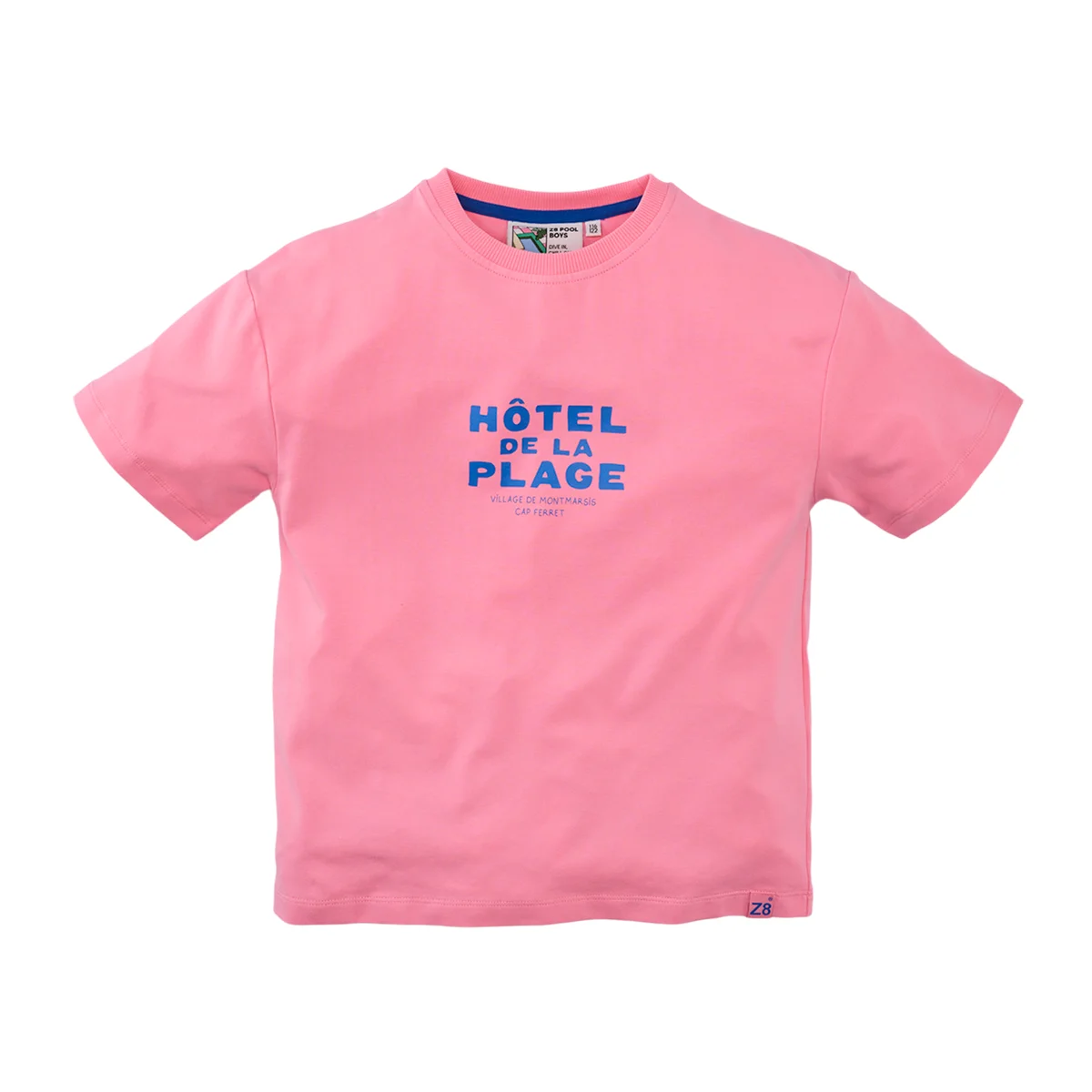 Real boys wear pink! Oversized tee met op de chest een tekstprint en een kleurrijke backprint die meteen aan vakantie doet denken — très cool!
