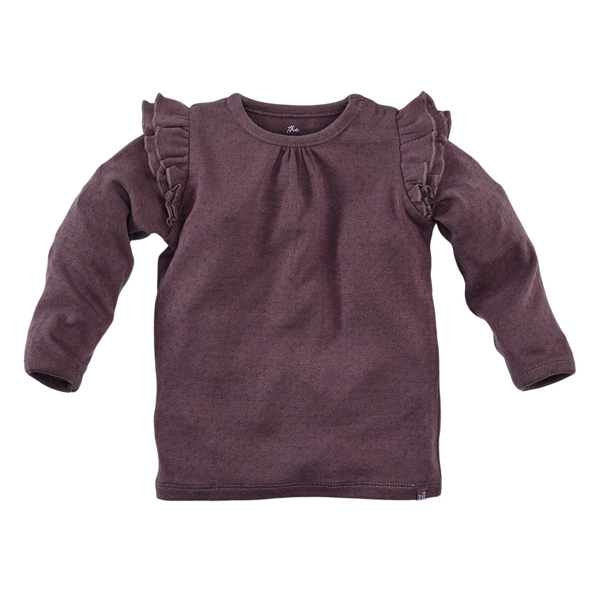 Neva heeft kleine ruffles bij de mouwtjes en is extra speciaal door haar pointelle tricot stof: ze is hierdoor superzacht & heeft een opengewerkt lief patroontje.