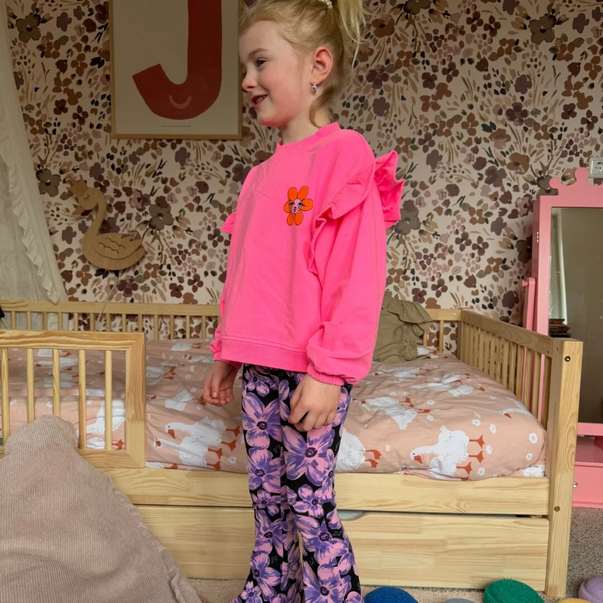 Flower Power! Speels, zacht en opvallend: de perfecte roze sweater met ruffles.