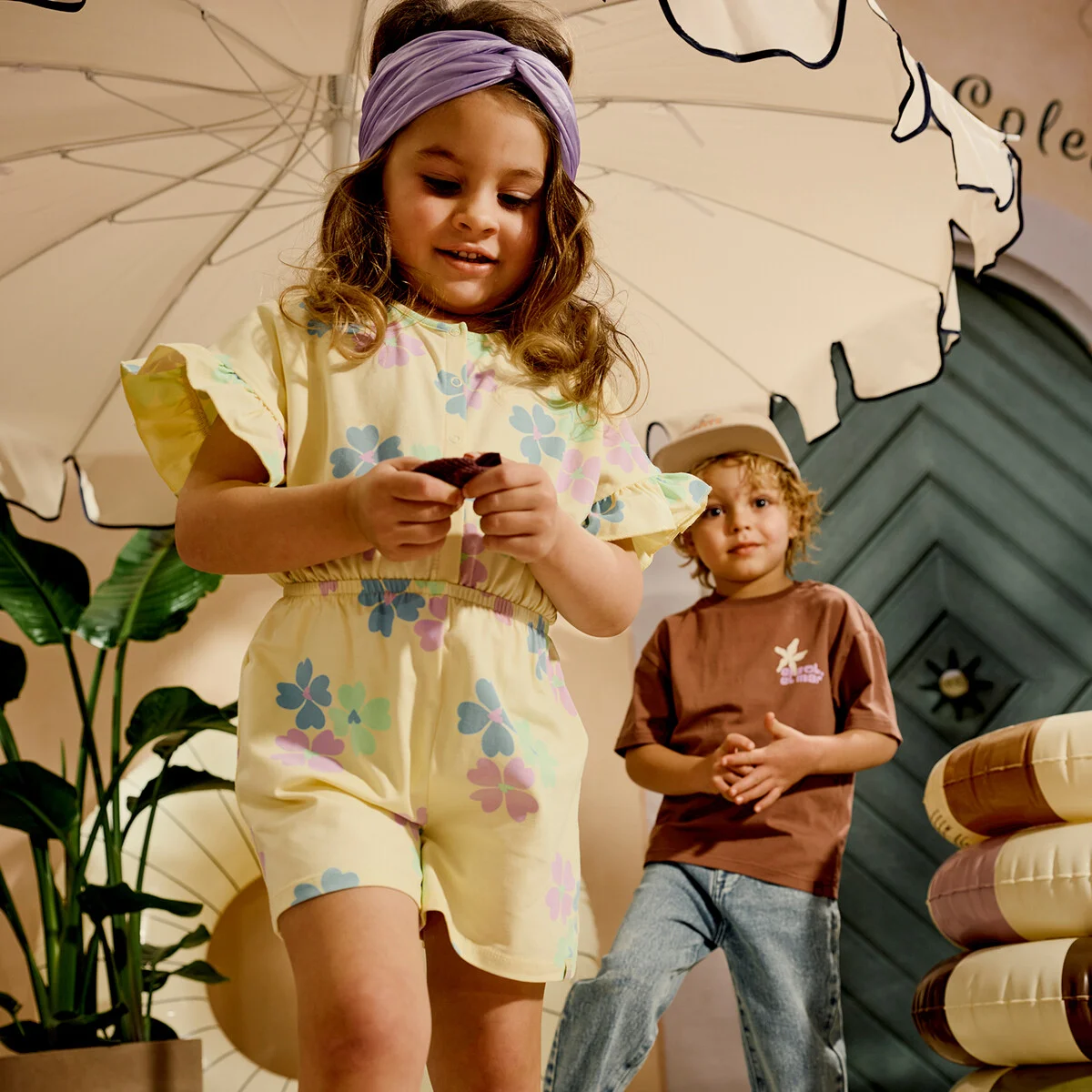 Zonnige playsuit met flower power en ruffle mouwtjes — aan en klaar voor zomer!
